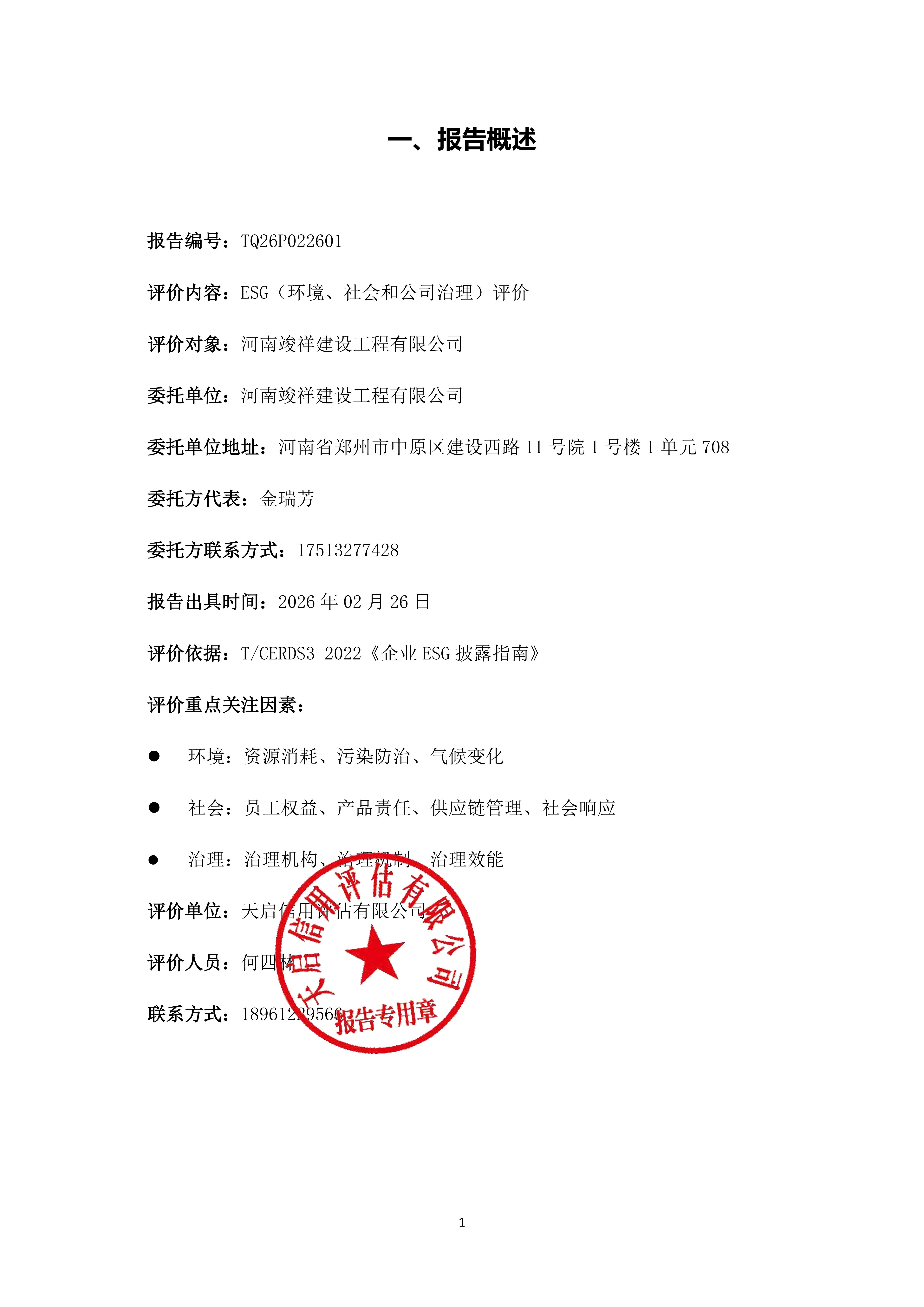 环境、社会和公司治理(ESG) 报告1-河南竣祥建设工程